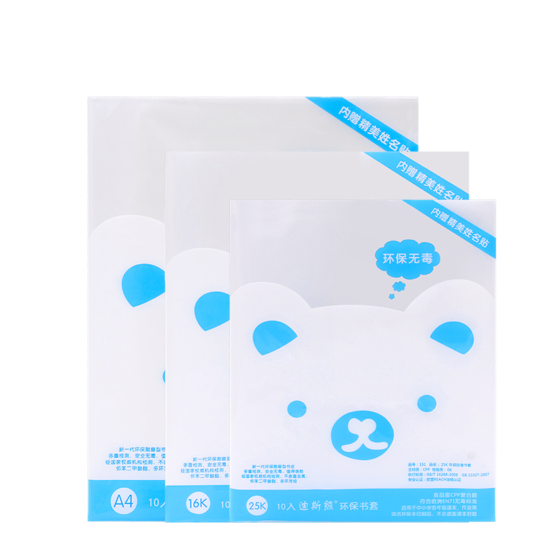 Dis Bear Transparent Bag Book Cover A4 16K 25K Elementary School Student Self-Adhesive Book Cover Bag Book Waterproof Safety Environmental Protection Grade 1-2 Set First Grade Set (Soft)