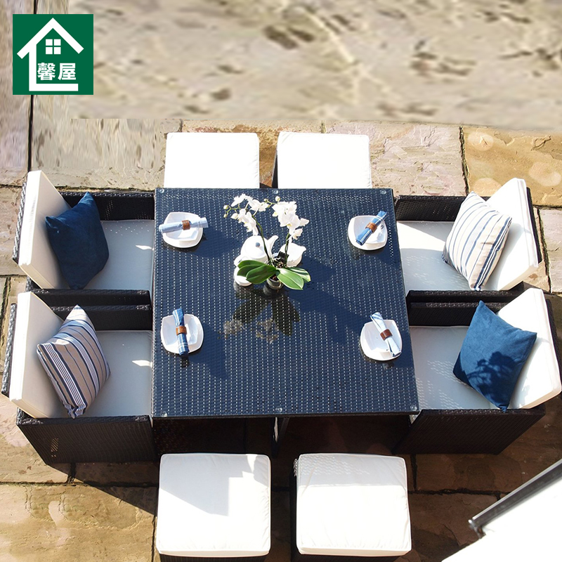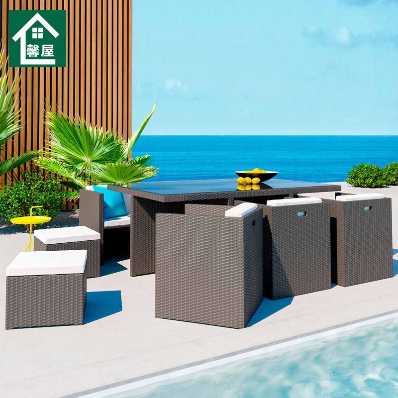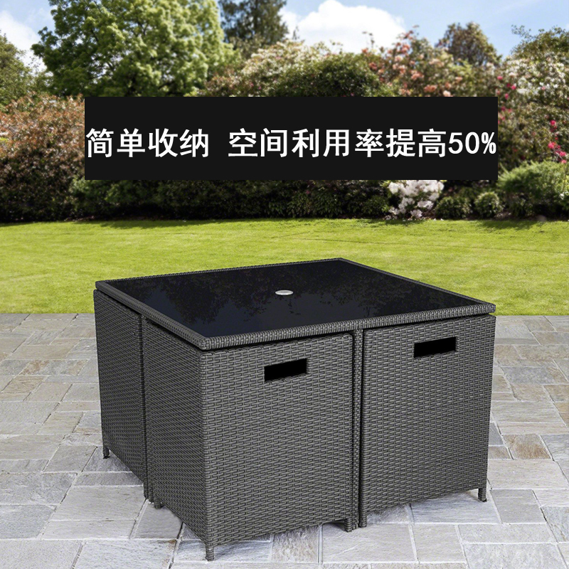 Outdoor rattan chair Courtyard garden yard dining table and chair leisure combination furniture tempered glass square table outdoor seat