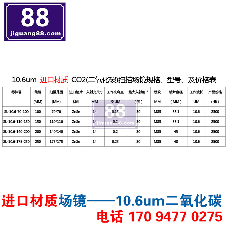 Import material 10 6um wavelength carbon dioxide laser field mirror F=250 Engraving Range 175 * 175co2