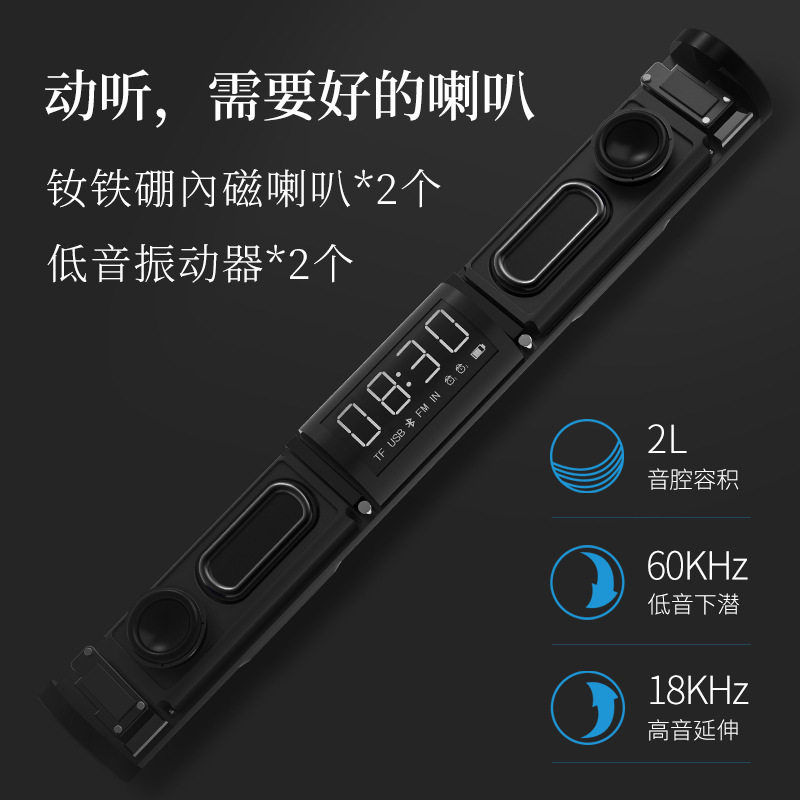 Long Bluetooth speaker sound bar 20W wireless radio computer subwoofer TV audio clock alarm clock speaker