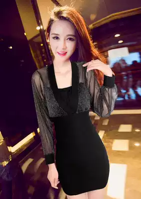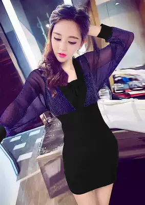 2017 High-quality ladyboy anti-string professional women's fake two-piece suit nightclub sexy slim-fit cd hip dress