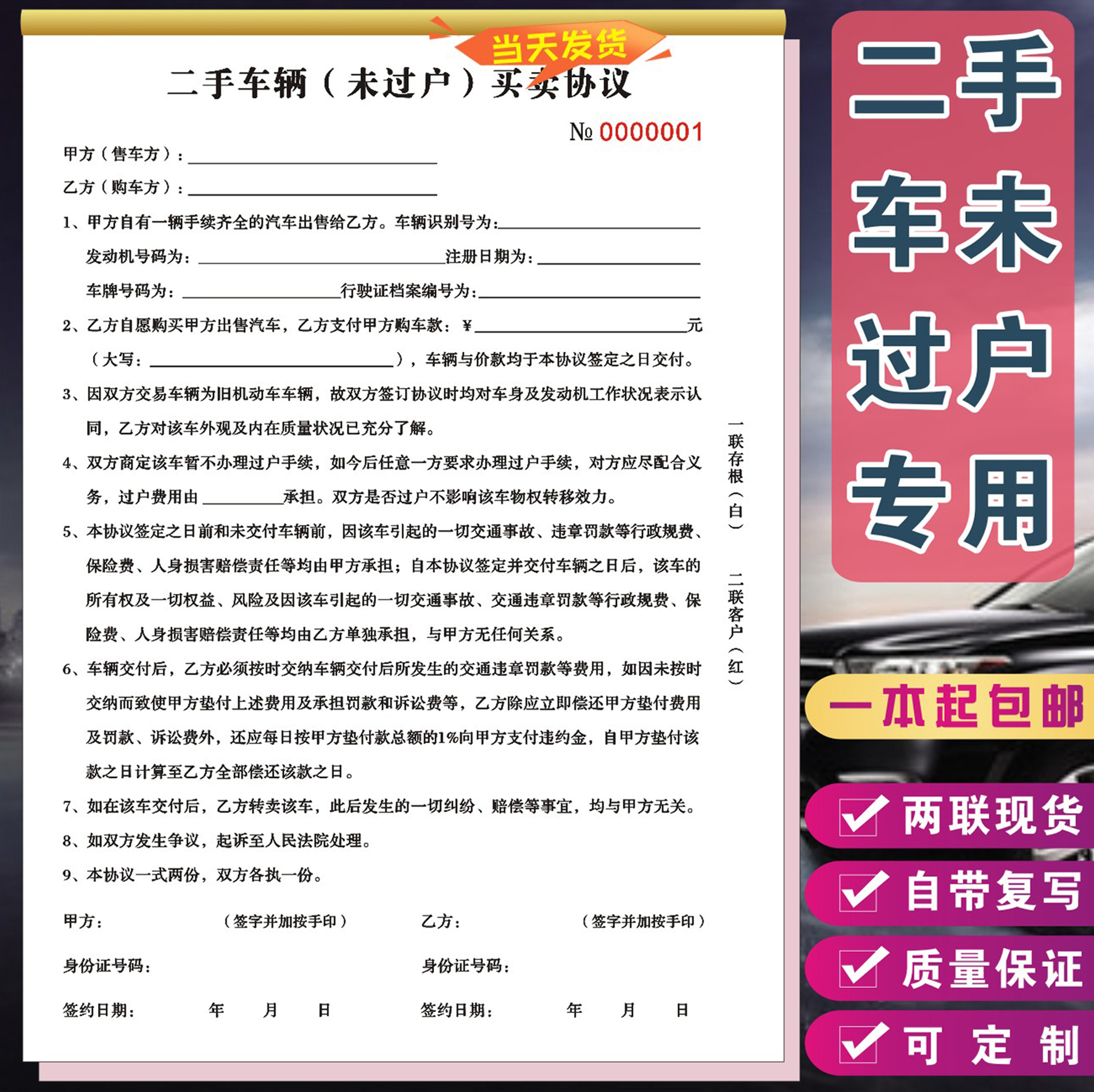 Motor vehicle second-hand car trading book vehicles without overhousepurchase agreement selling old motor transfer car scrap contract documents