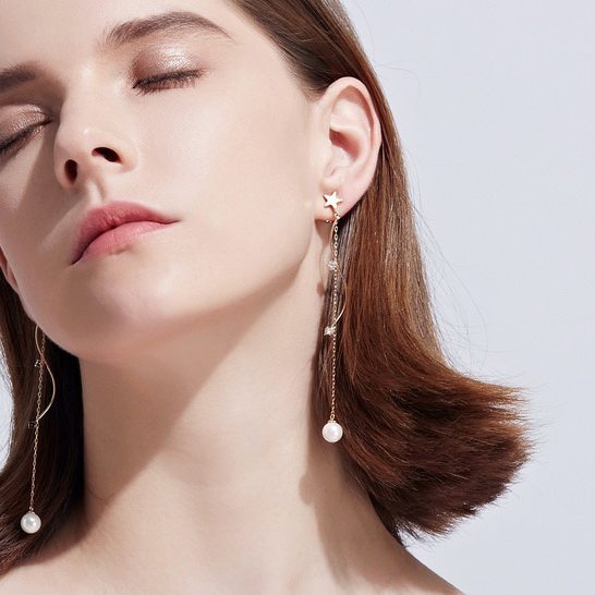 Suitable for round face cold wind long version star tassel earrings drop earrings ear clip no ear holes female Korean personality is thin