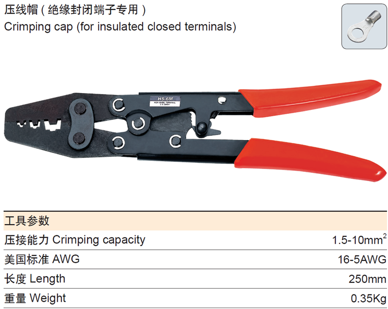 Huasheng ratchet type crimping cap pliers insulation terminal pliers HS-6M labor-saving clamp wire pliers Japanese style