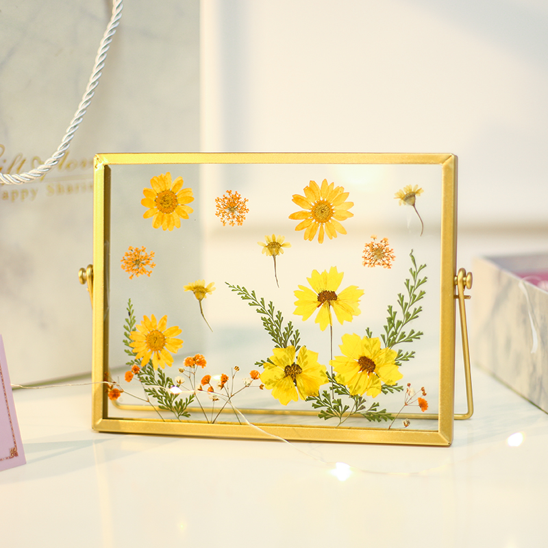 Flower color bright yellow, light purple, lemon yellow, orange, light yellow, 4-inch gold U photo frame, spring full garden, tweezers, 6-inch gold U (horizontal), orange dried flowers, tweezers, 6-inch gold U (vertical), spring