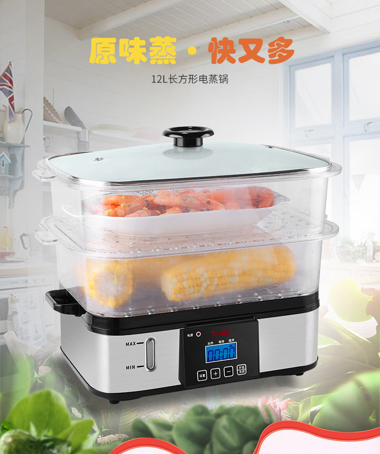 Rectangular double-layer multi-function steamer household anti-dry super large capacity transparent timing mechanical fish steamer - Taobao