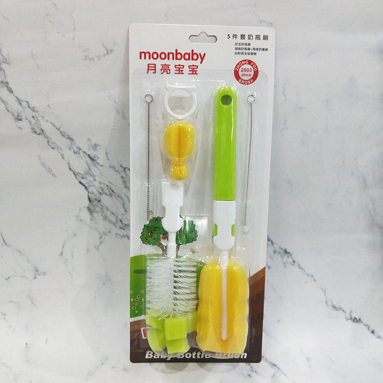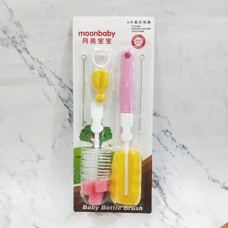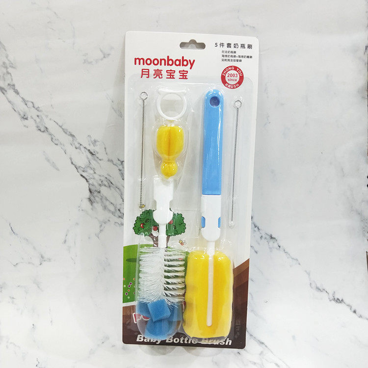 Moon Baby 5 Pieces Of Milk Bottle Brushed Nylon Sponge Pacifier Brushed Straw Brush Cleaning Tool Three Colors Optional