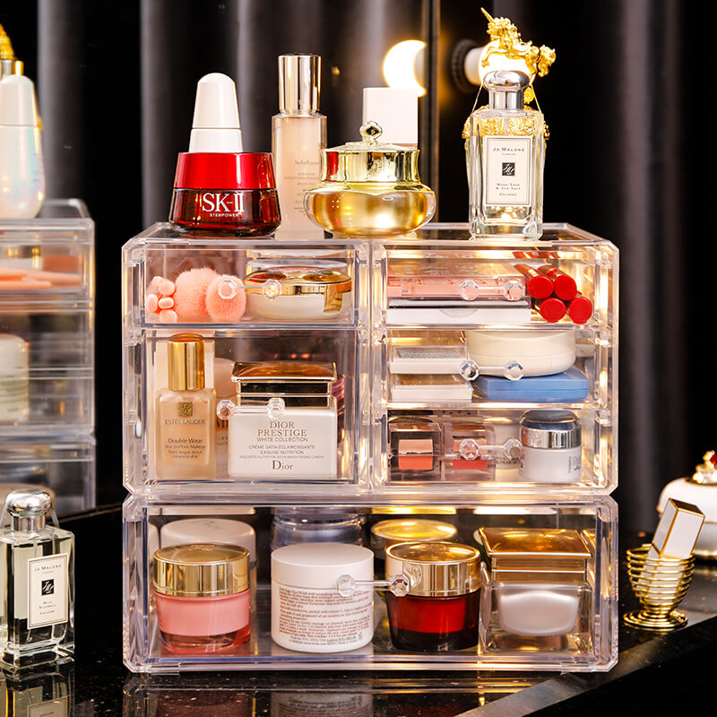 Net red transparent extra-large cosmetic anti-dust containing case Rosemary Skin Care Products Shelve Red Table Makeup Table
