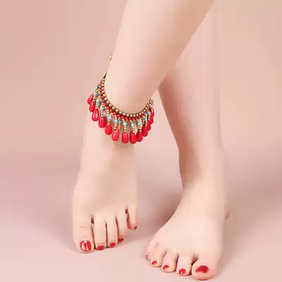 Ethnic style foot refining women's simple Thai hand design retro optimization red stone bell foot refining bare jewelry