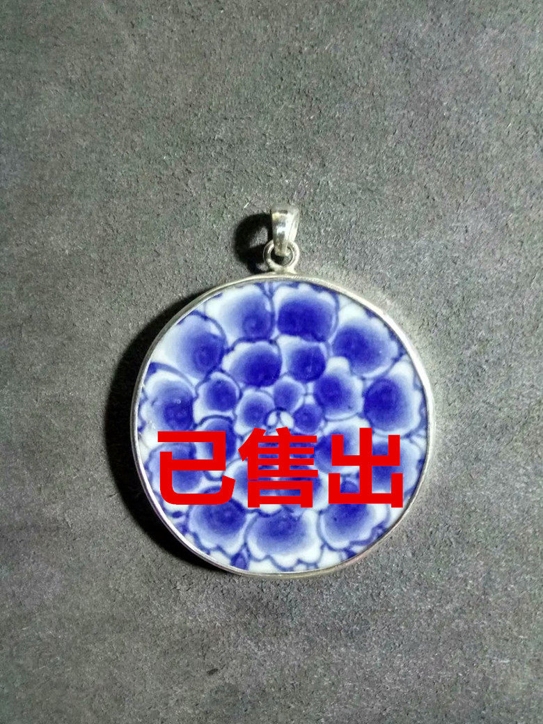 Qing Kangxi year-made blue and white beautiful flower old porcelain piece hair color first-class pendant sweater chain sterling silver edging
