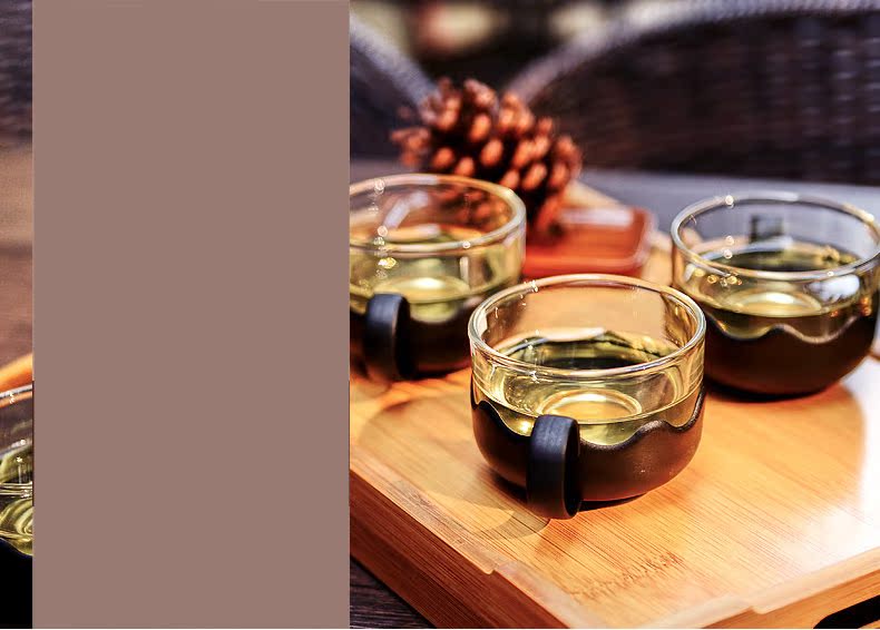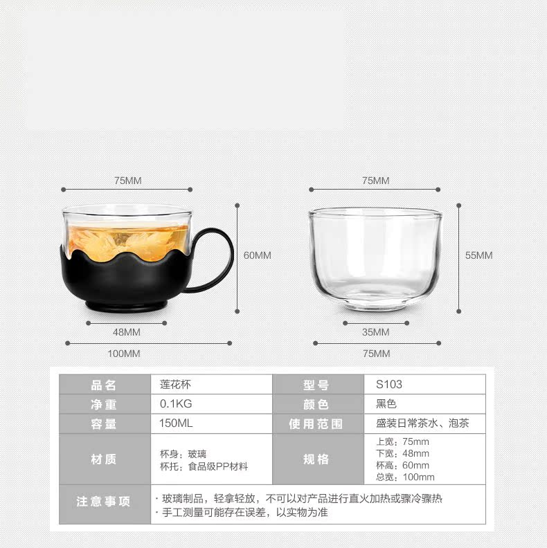 Lilac Glass Tea Cup Anti-scalding Glass Lotus Cup with Cup