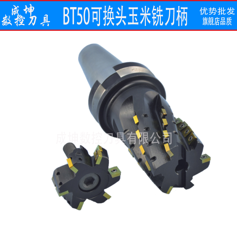 Integral BT50-shank interchangeable head Indexable spiral corn milling cutter with shank end cap coarse leather milling shank