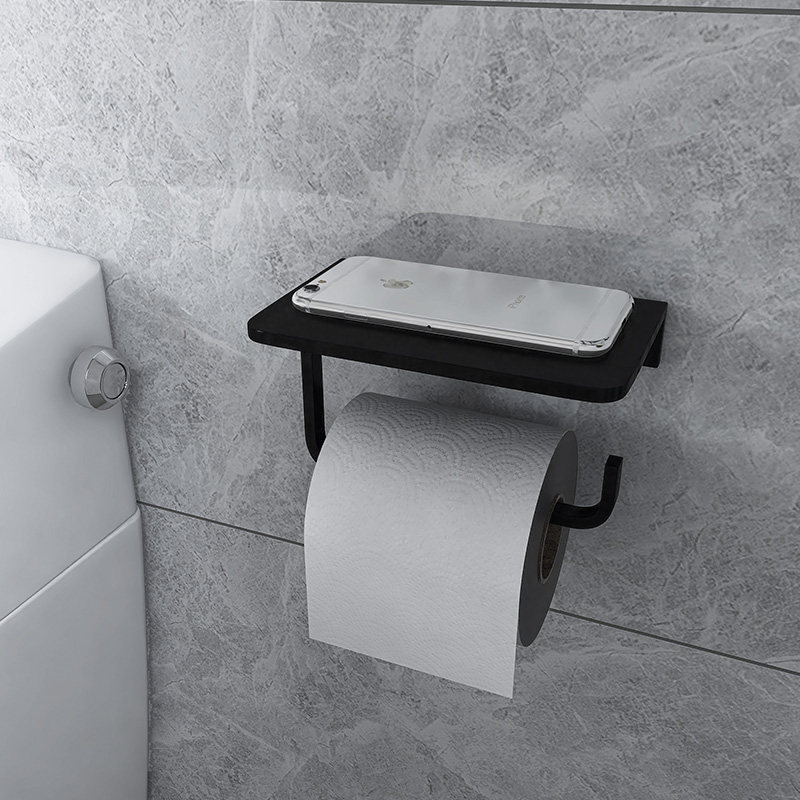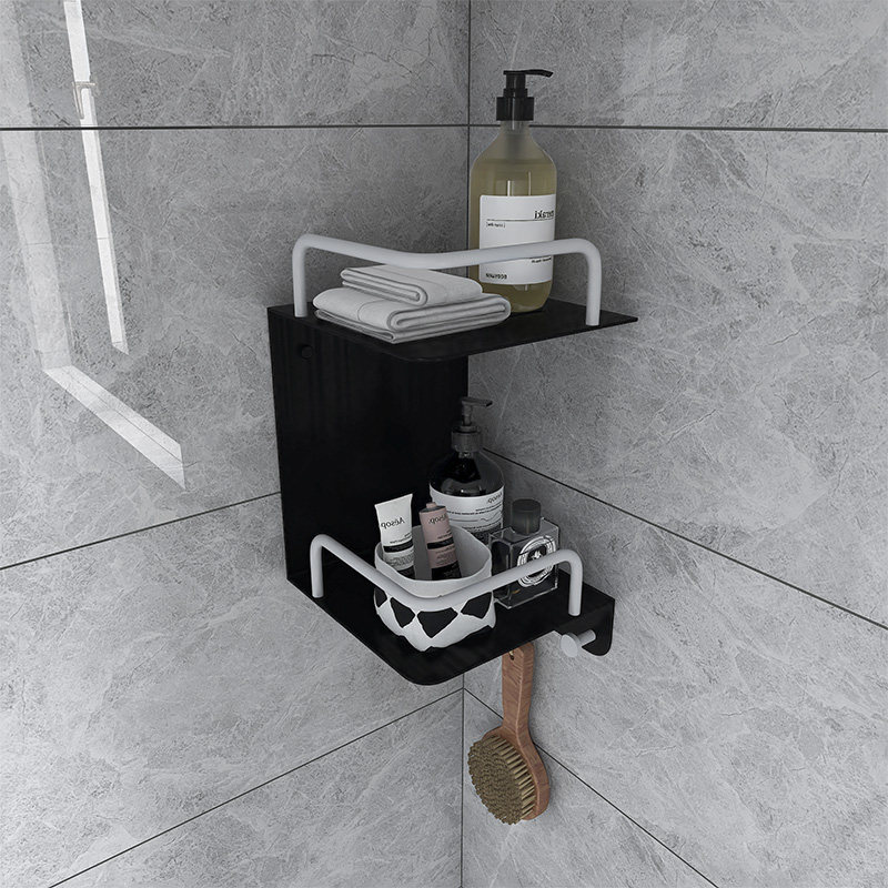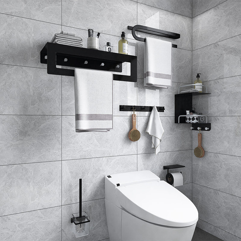KeEagle Perforated Black Bathroom Shelve Space Aluminum Towel Rack Makeup Room Bath Towel Rack Bathroom Pendant