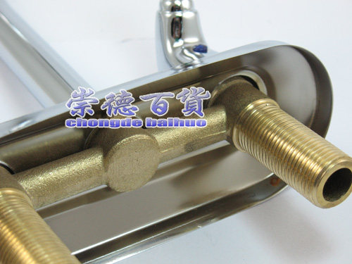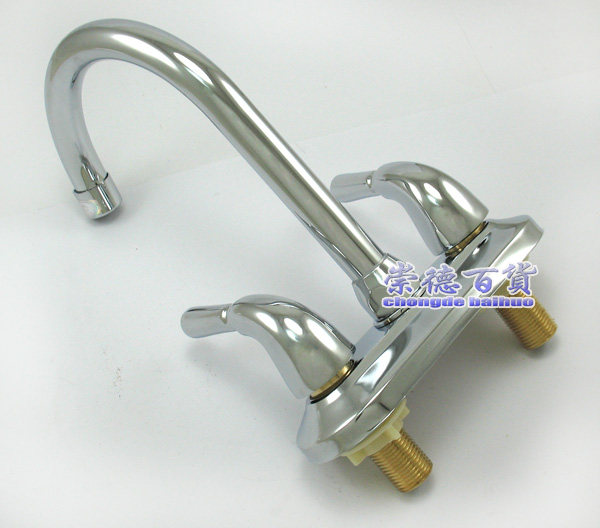 Double-handled double-hole basin cold and hot water faucet all-copper main body washbasin basin basin faucet mixing valve curved rod