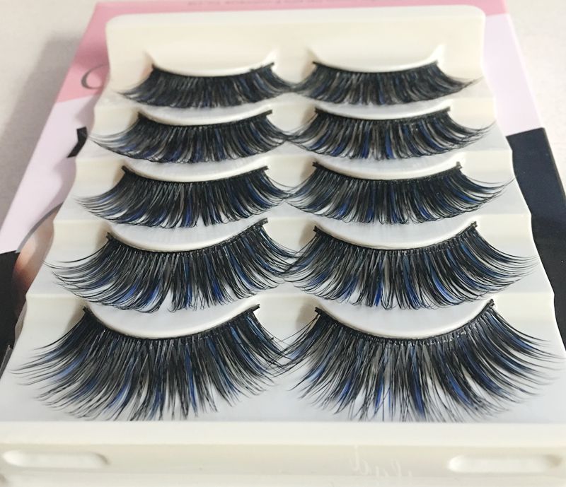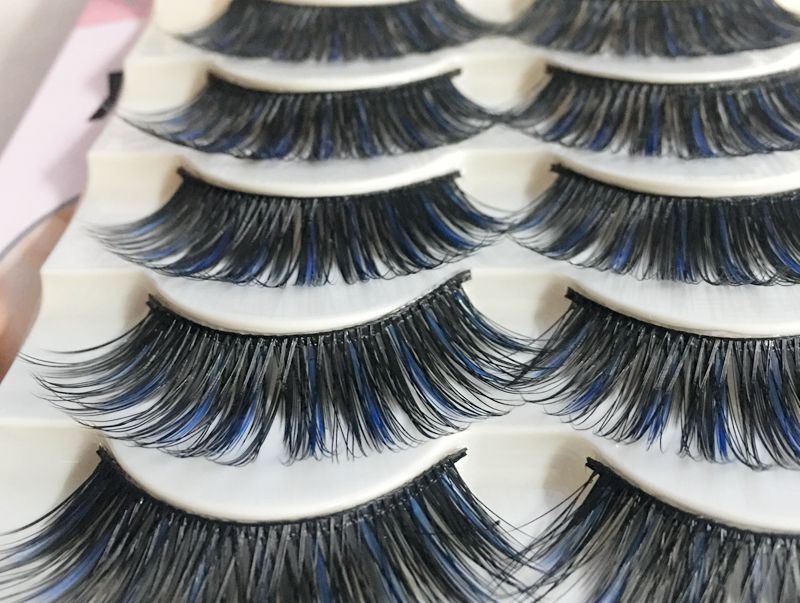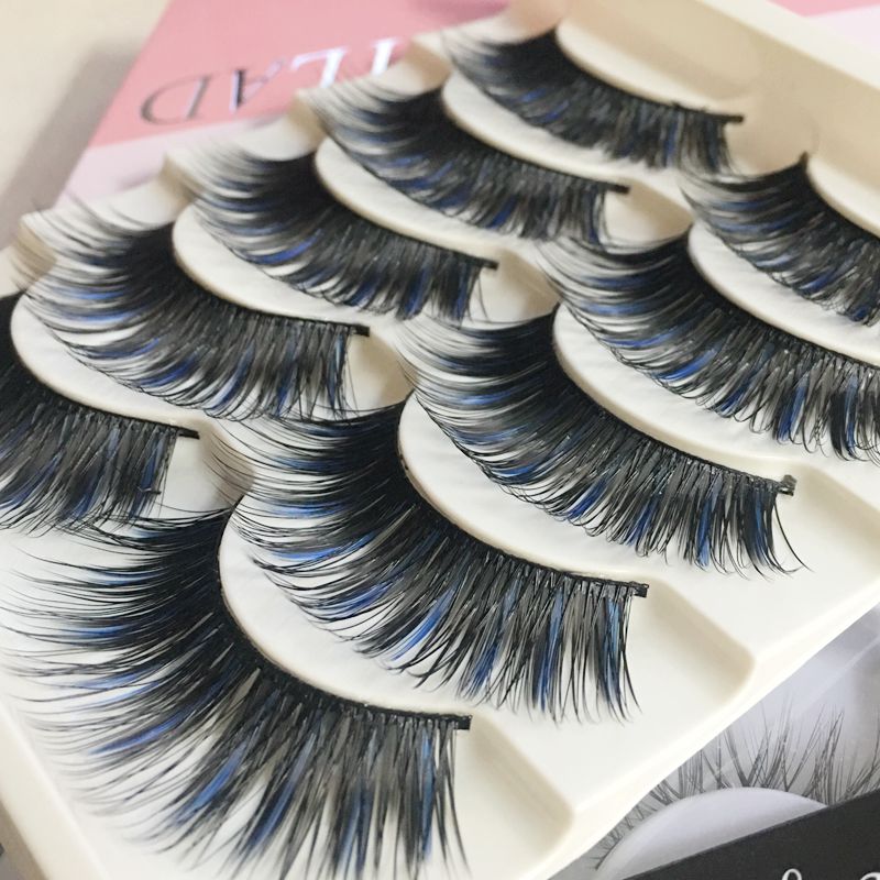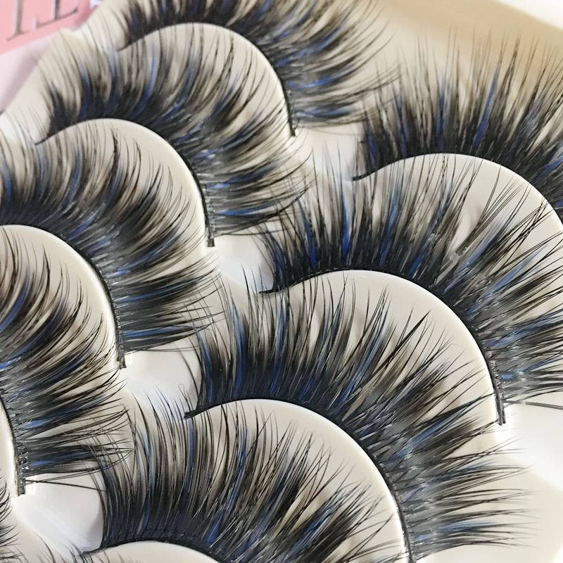 2 boxes of glue blue false eyelashes Color eyelashes thick cross-stage heavy makeup exaggerated eyelashes