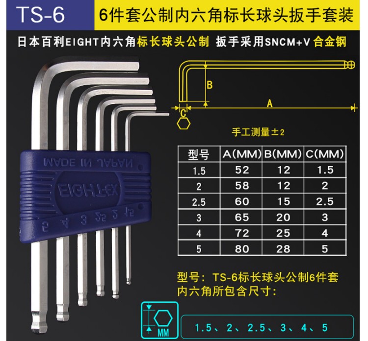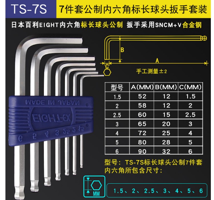 Japan EIGHT Bailey imports inner hexagon wrench special short ball head TS-9 TS-9 TS-8 TS-7S TS-6