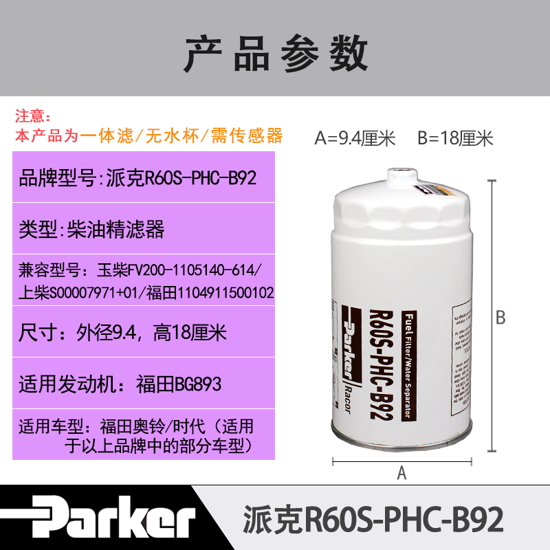 Jinlong Kate and Kowloon Commercial Vehicle Oil Water Separator S00007971 02 Parker Diesel Filter 2 Micron