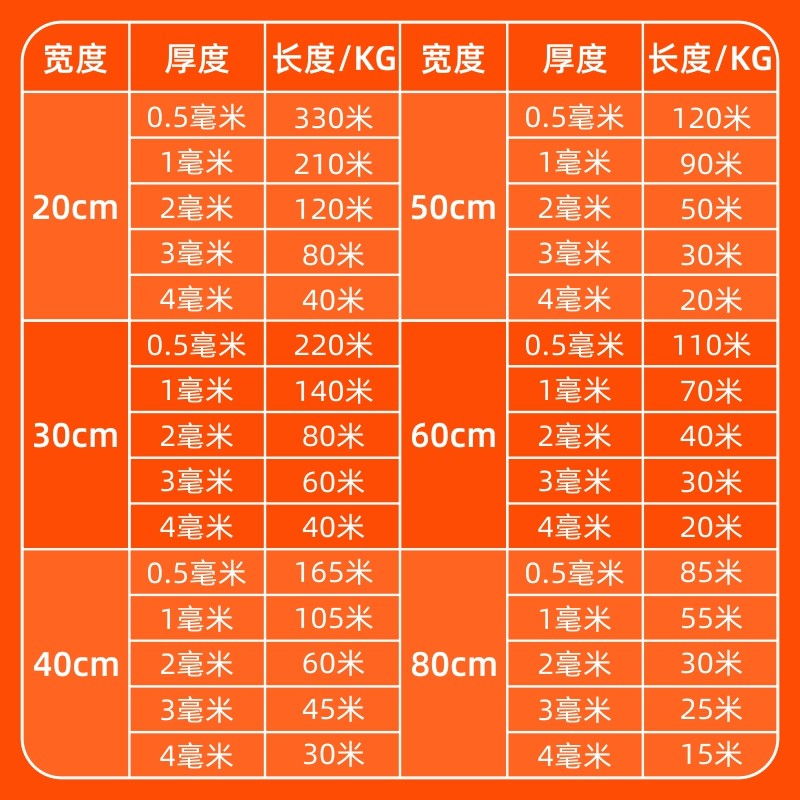 20cm wide and thick 0 5mm (about 220 meters long) 0 7KG20cm wide and thick 1mm (about 130 meters long) 0 7KG20cm wide and thick 2mm (about 75