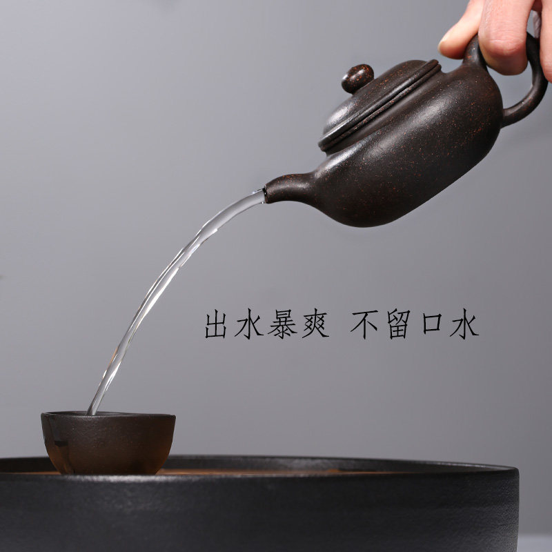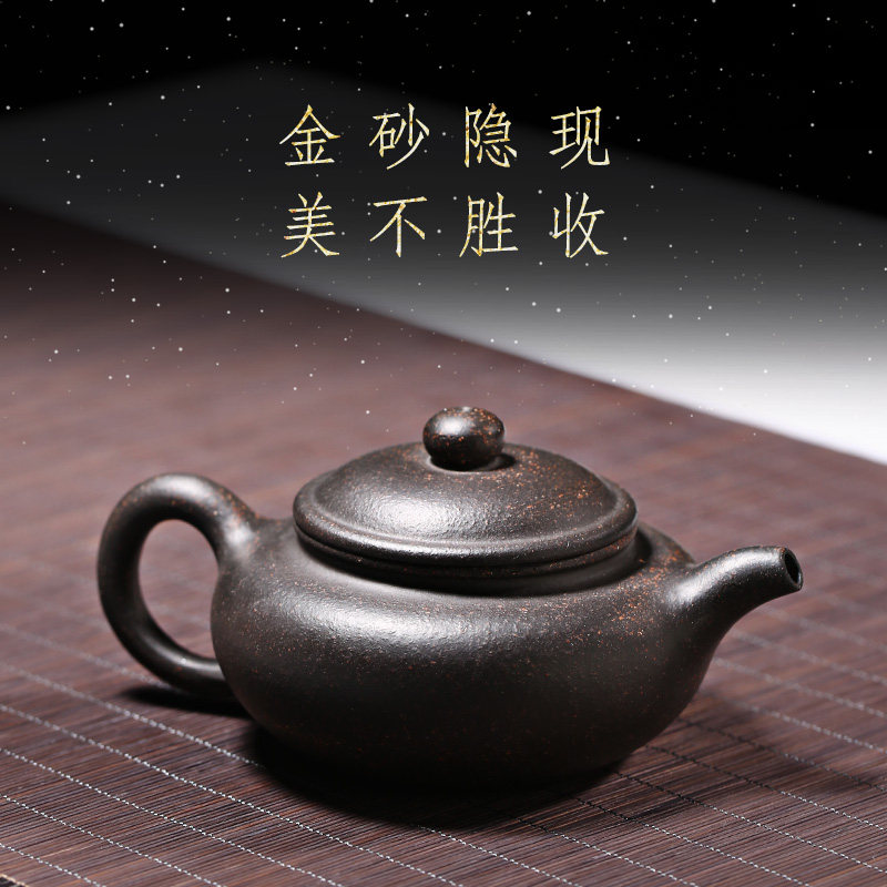Authentic Yixing Zisha teapot famous pure handmade teapot home kung fu tea set black gold sand antique pot