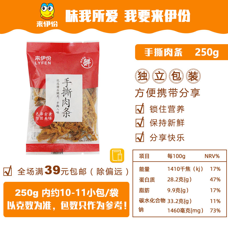 Come to Iportions Hand Torn Meat Strips 250g Pork Snacks Pork Strips Small Packaging Casual Snacks Snack for Eyes