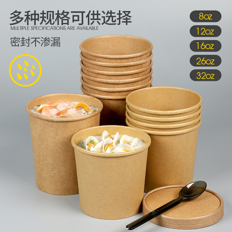 Kraft paper round Malatang food delivery packing box Disposable lunch box with lid Heat-resistant high pot instant noodle paper bowl
