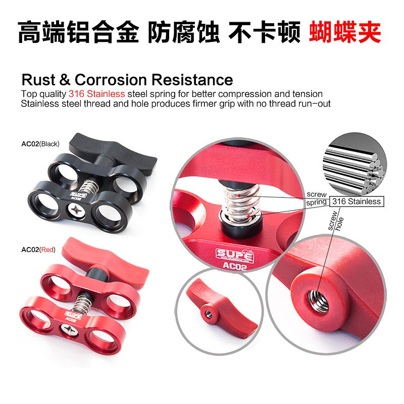 Scubalamp supe diving butterfly clip two light arms Stainless steel connecting clip Aluminum alloy AC02 AC03