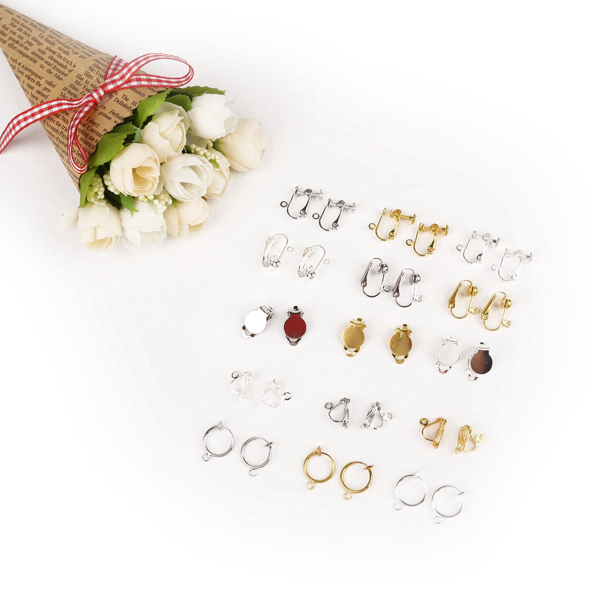 Iron Ear Clip 6x13mm White K 20 Iron Ear Clips 6x13mm Silver 20 Iron Ear Clips 6x13mm Gold 20 Iron Round Ear Clips