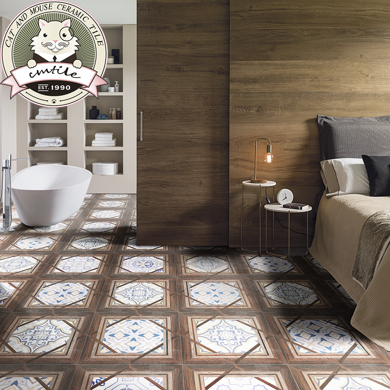 American country imitation wood grain color tile Living room bedroom study floor tile Non-slip wear-resistant antique brick 500x500