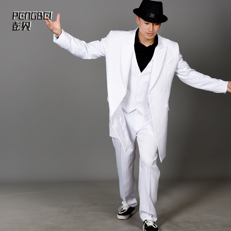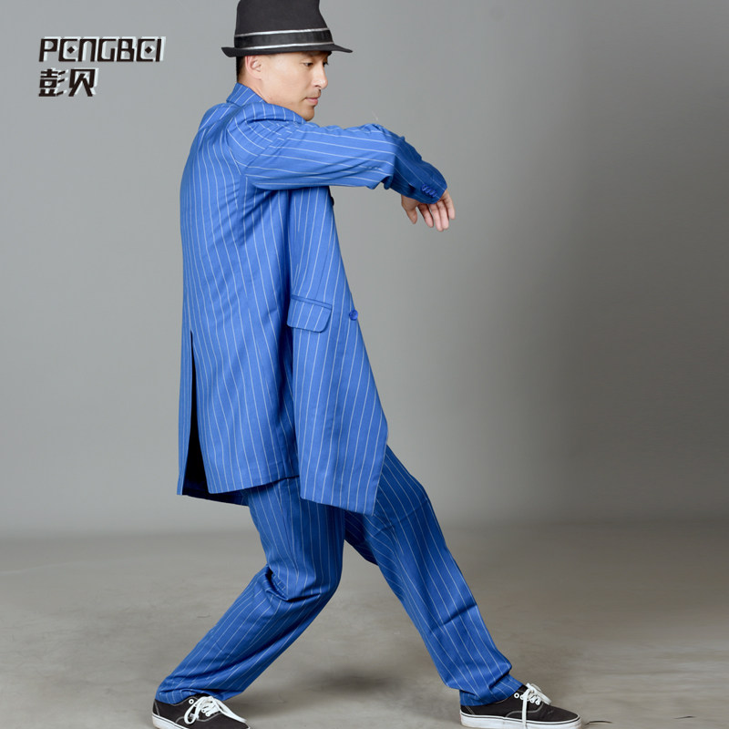 poppin western-style suit lockin street dance mechanical dance striped ultra-long suit Costume Out team Custom 072