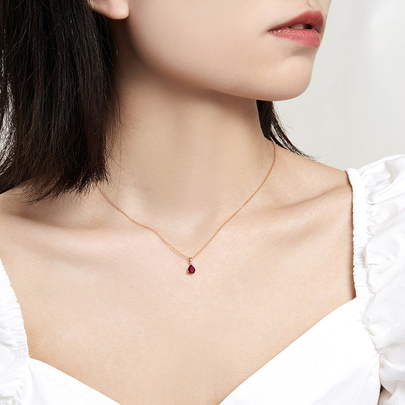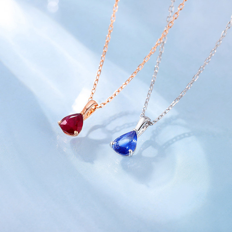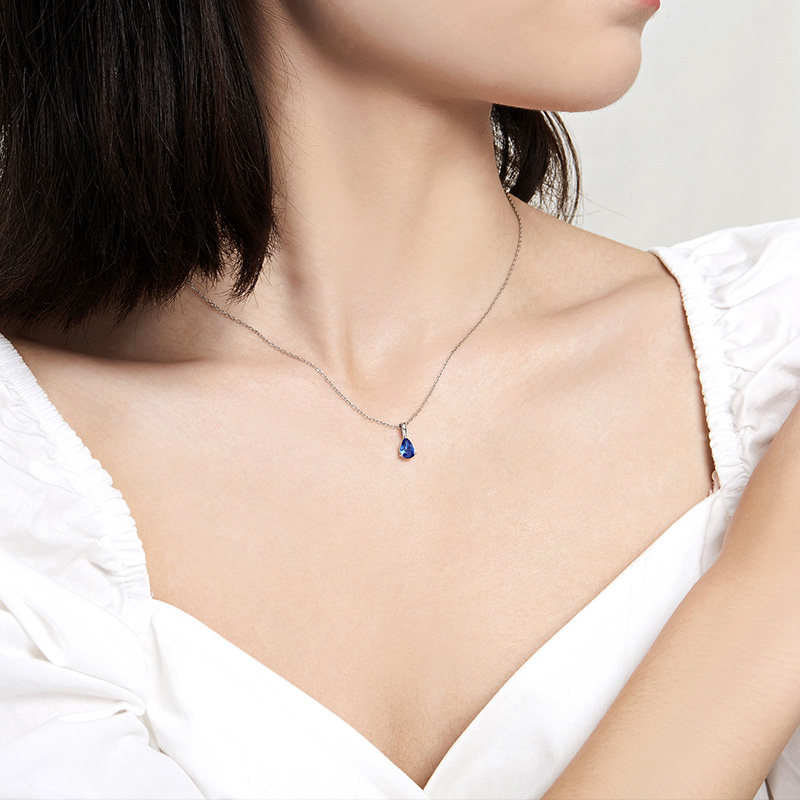 Happy Drilling White 18K Gold Group Inlaid Blue Drop Shaped Gem Color Jewel Pendant Fashion Women's Accessories Necklace Lock Bone Chain