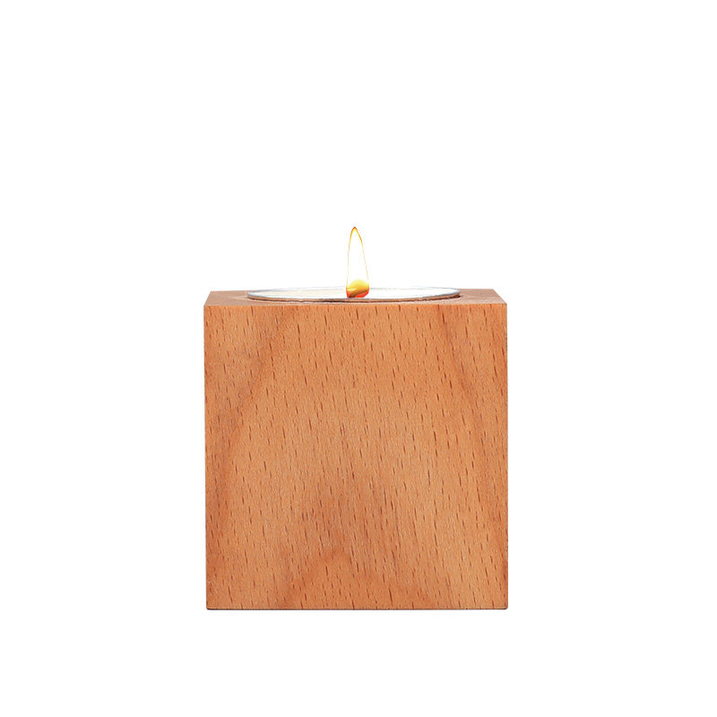 Solid Wood Creative Candle Holders Home Swing Accessories Bar Cafe Wax Candlestick Decoration Craftsmanship Square Candle Light Beech Wood