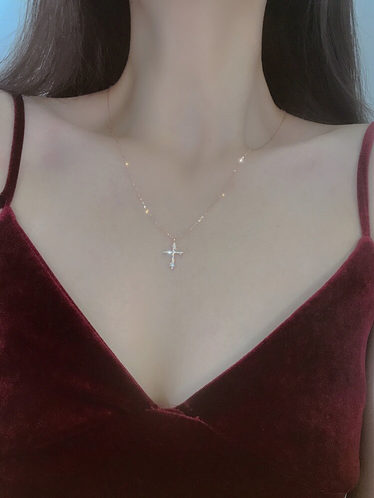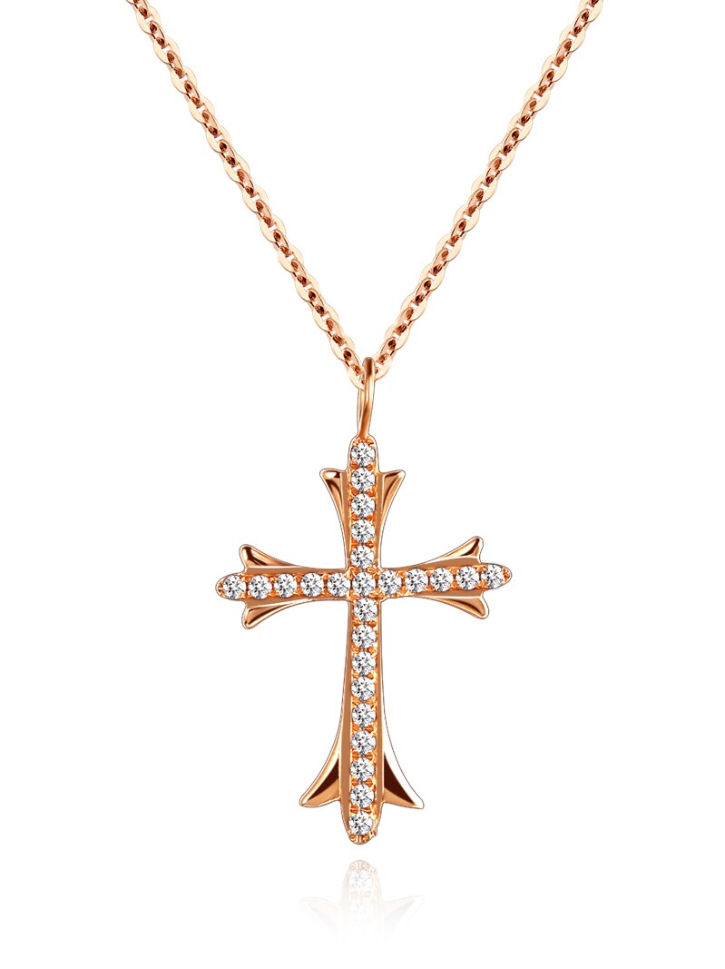 18K Platinum Rose Gold Diamond Pendant Lady Custom Platinum Necklace Woman Lock Bone Neck Accessories European And European Wind Cross