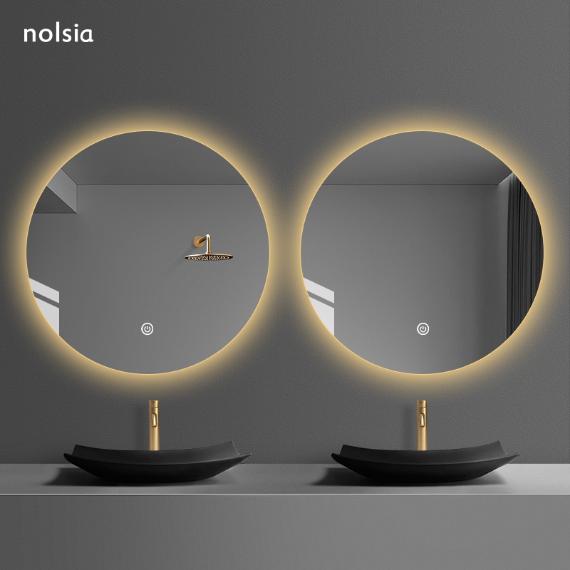 Mirror wall-mounted bathroom mirror bathroom smart toilet with light round mirror Wall-mounted anti-fog luminous led mirror round