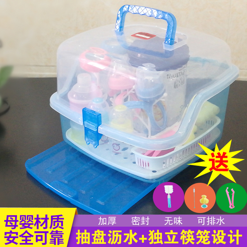 Thickened dustproof with lid bottle storage box baby tableware milk powder storage box hand drainage dry shelf