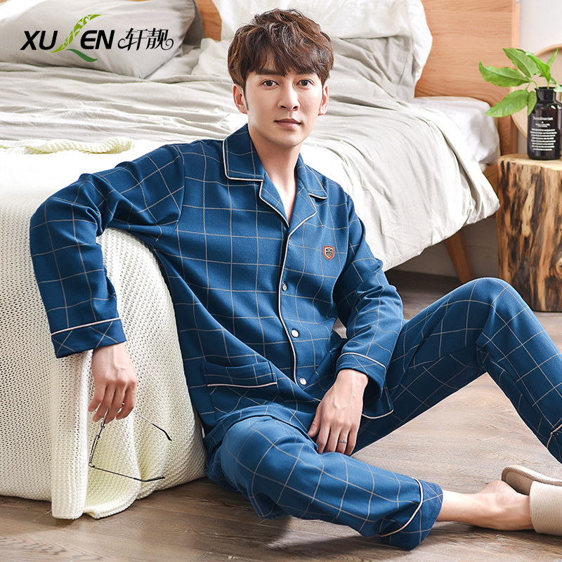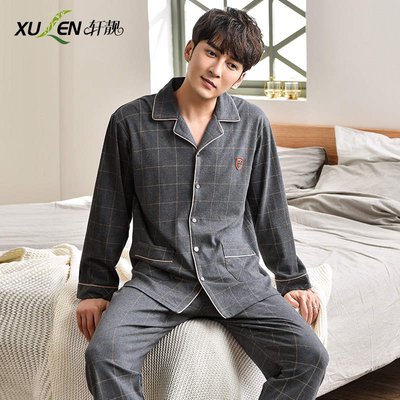 Dad Sleepwear Male Long Sleeve Pure Cotton Loose large size for spring and autumn All cotton Home Clothing Suit Middle Aged Men Summer Thin