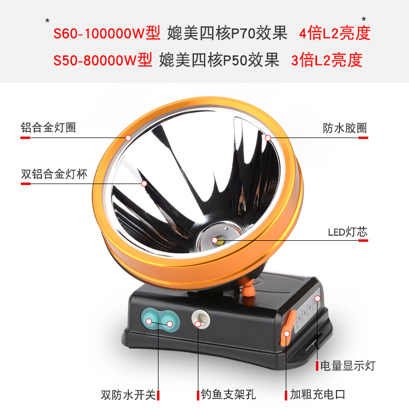 2021 headlight charging super bright head mounted quad core p200 night fishing miner lamp hernia long shot 3000