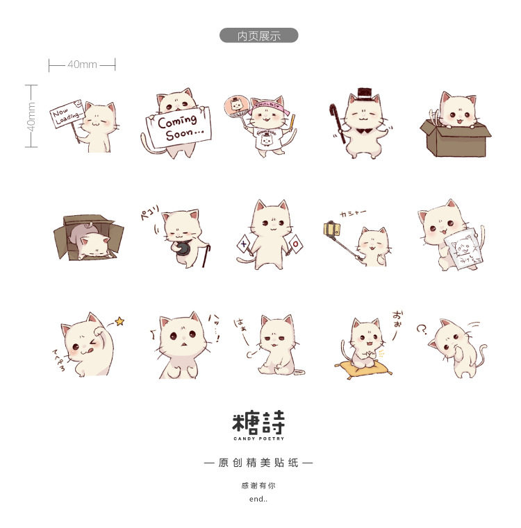 Sugar Poetry Boxed stickers for cute Jam Cute Cartoon Kittens DIY Decorative Adhesive Hand Ledger Painting Closure