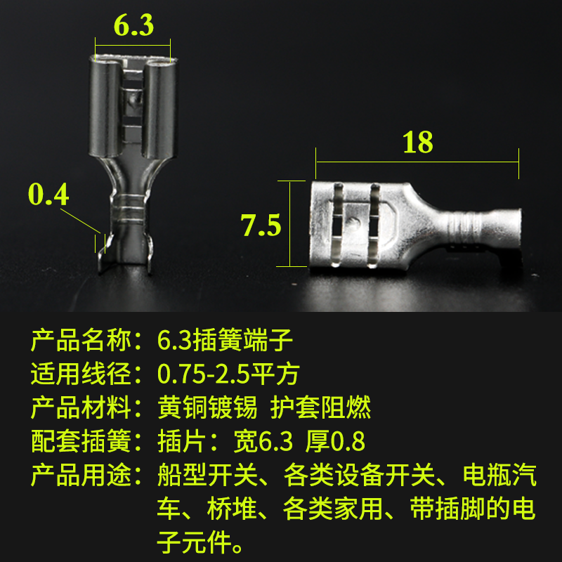 Spring terminal block 6 3mm thickening copper plug - in cold - pressed plug - in wire connector with sheath