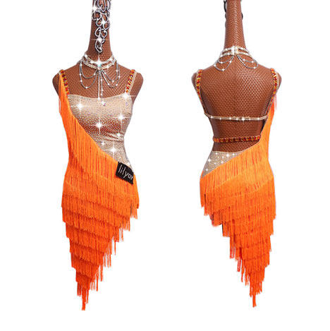 Dazzling orange long dress (skirt length 130) dazzling orange long dress necklace head decorated with orange short style dress Long 100 send earrings Dancing Orange Short necklace headwear