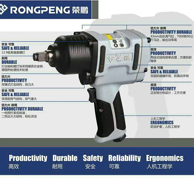 Rong Peng Pneumatic Pneumatic Wrench Small Pneumatic Wrench Pneumatic Wrench Wind Wrench Gas Trigger Repair Tool Untire Screw 7445