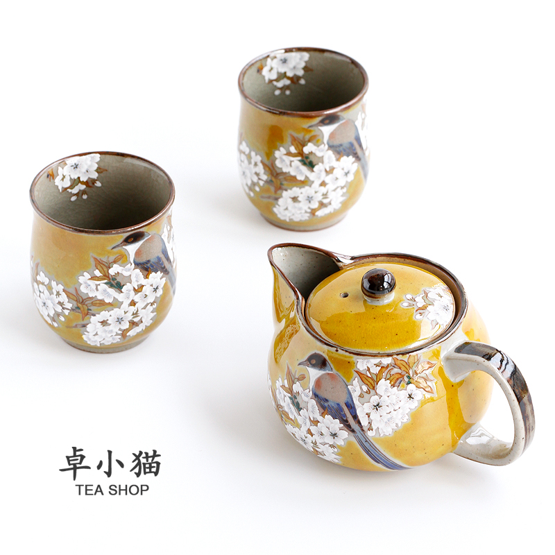 Spot Japan Imports Nine Valleys Burn Day Style Ceramic Retro Cherry Blossom Bird Kongfu Tea Pot to Cup Tea Cup Gift Box
