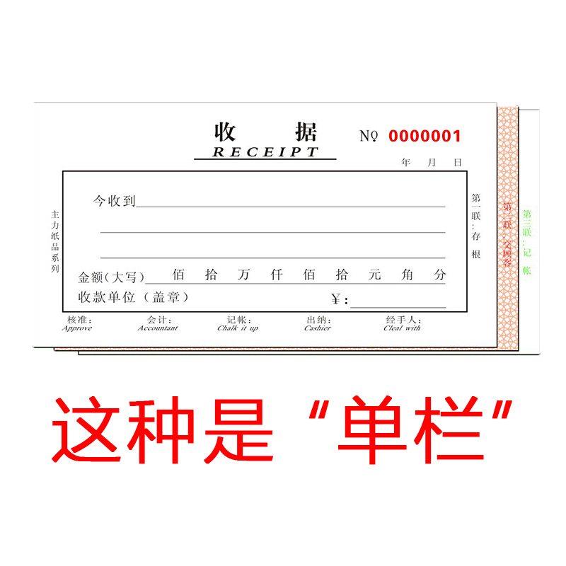 Main Two Union Triple Four link single column Multi-column receipt documents Collection receipt 20 This price
