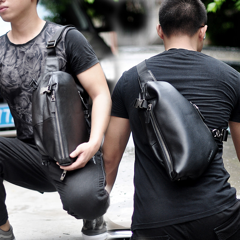 2022 new chest bag men's messenger bag tide brand large-capacity men's leather shoulder bag first layer cowhide crossbody men's bag