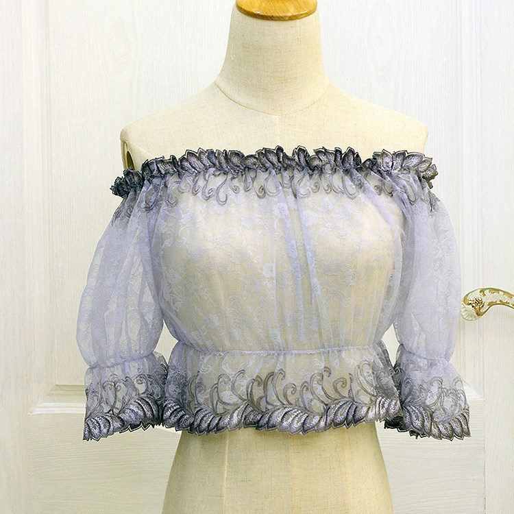 lolita foreign loading summer embroidery lotus leaf edge inner hitch undershirt round collar lined with short sleeves blue lace