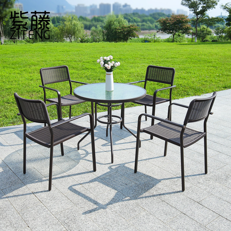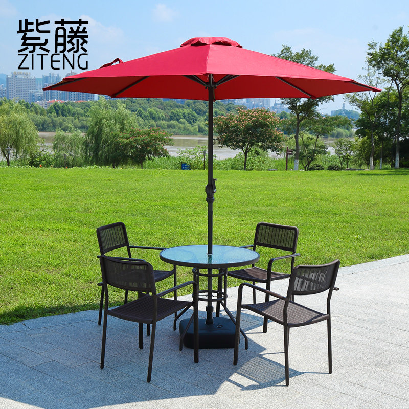 Outdoor tea table and chair five-piece outdoor terrace kit combination with umbrella outdoor furniture minimalist coffee shop table and chair