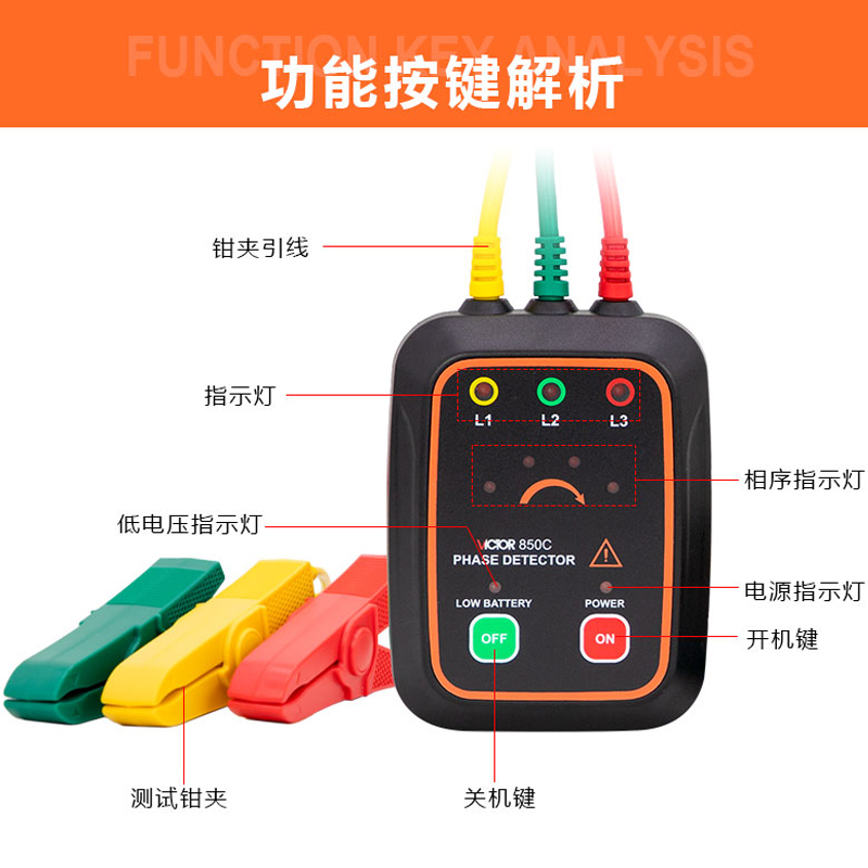 VICTOR triumph VC850C VC850D phase sequence meter detector three-phase alternating current phase meter phase meter