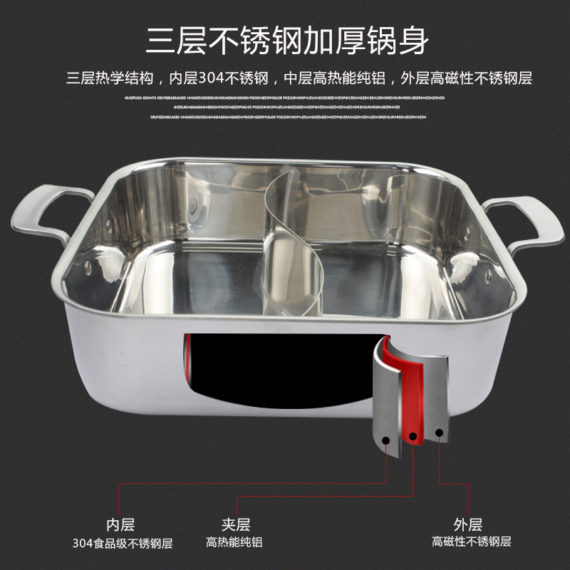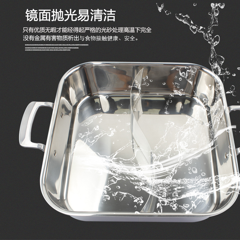 Thickened 304 soup pot Mandarin duck pot Stainless steel energy-saving square hot pot pot Commercial induction cooker fire pot shop special