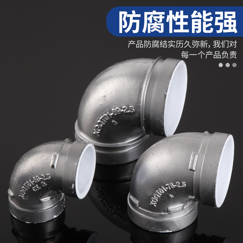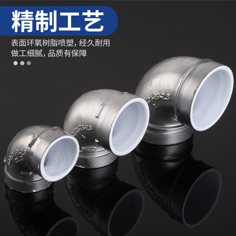 Plastic coated trench pipe fitting with plastic 90 ° elbow galvanized drinking to water pipes, etc. via clamp 90-degree positive elbow hoop