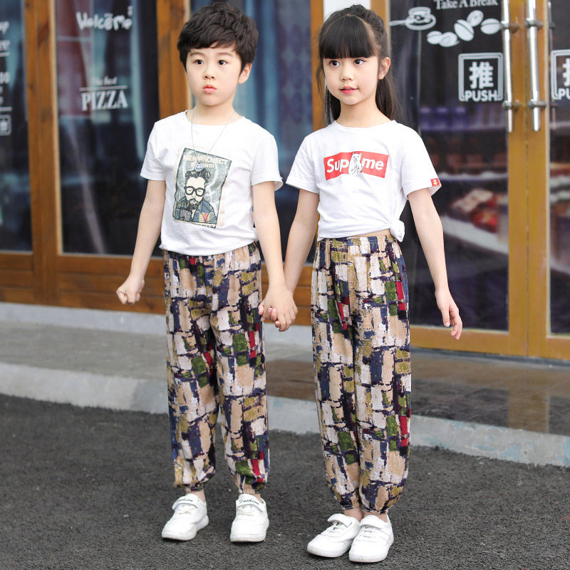 Children Light Cage Pants Summer Stretch Silk Trousers Slim Kharen Pants Boy Girl Sleeping Pants Artificial Cotton Baby Mosquito-Proof Air Conditioning Pants
