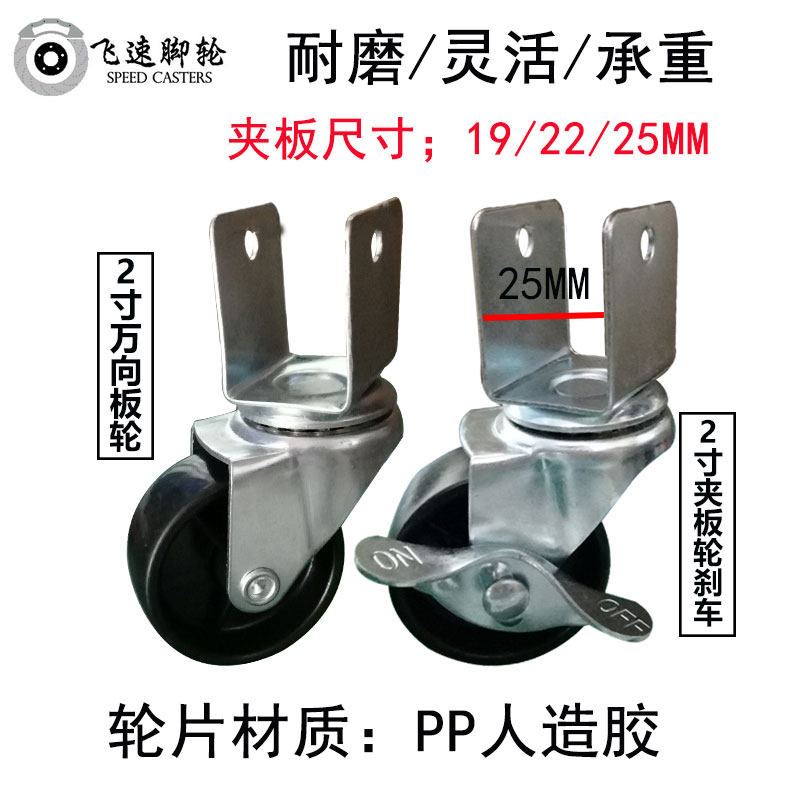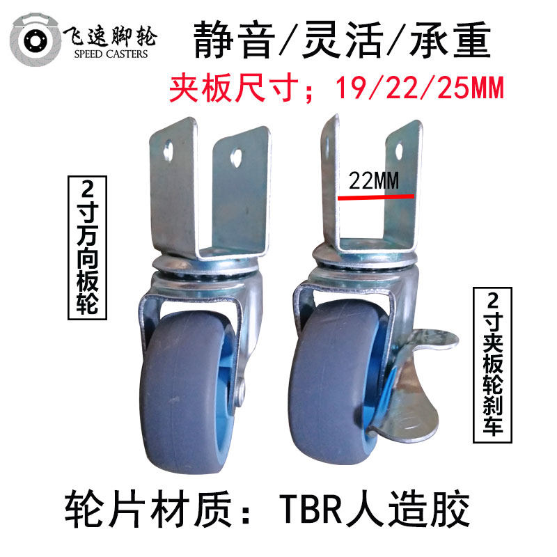 Crib car universal wheel furniture table and chair universal pulley 3 splint wheel 2 inch mute with brake caster PU